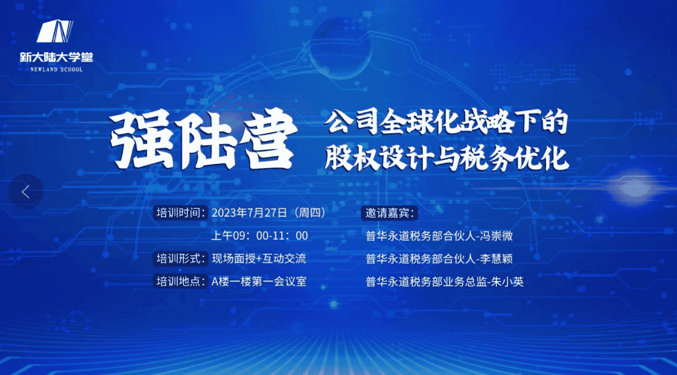 新大陆强陆营 | “公司全球化战略下的股权设计与税务优化”分享培训会举行
