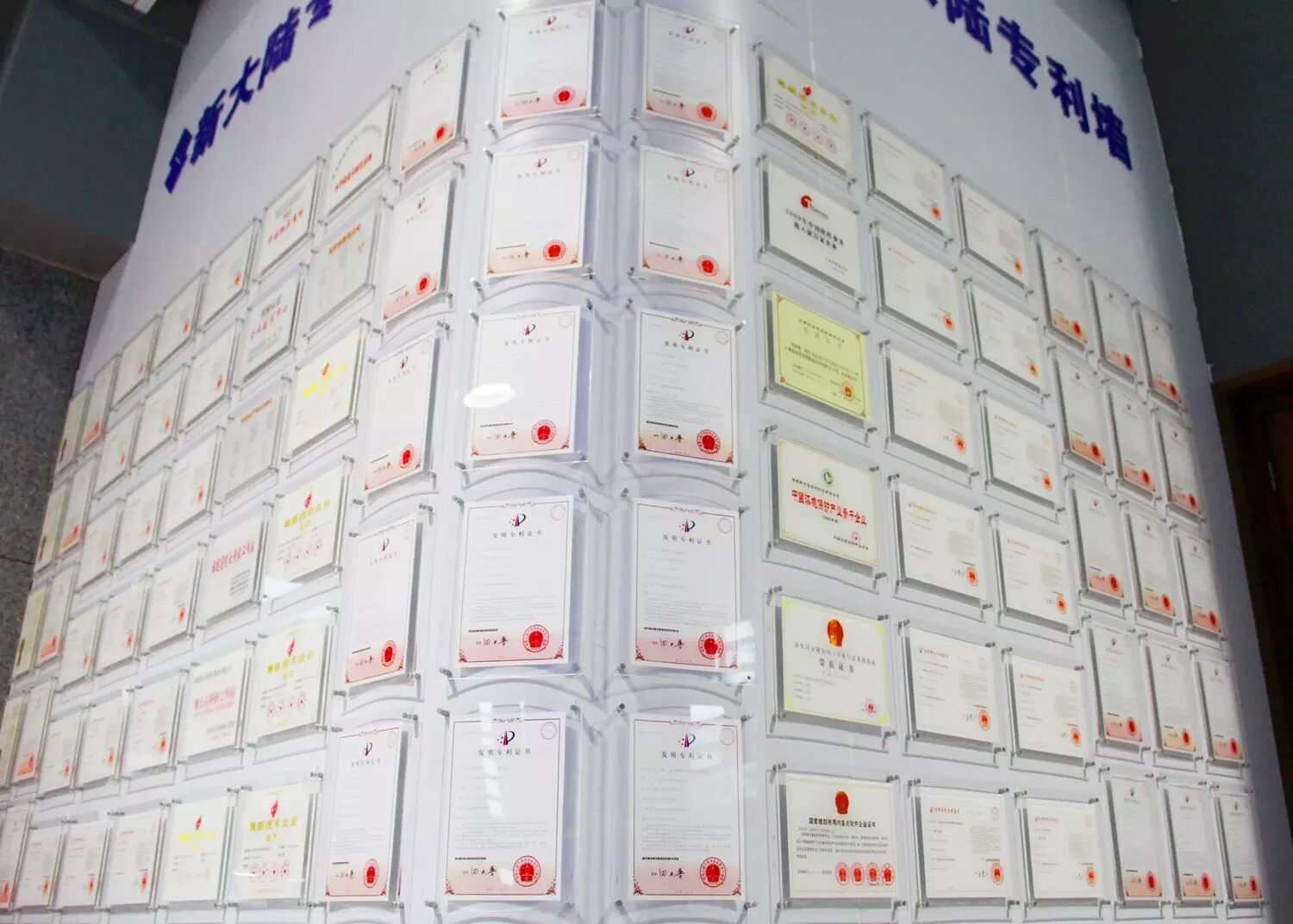 图为新大陆科技集团专利墙