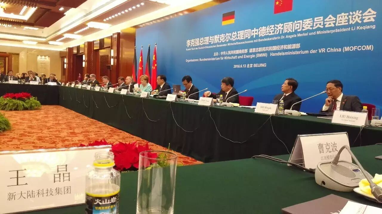 6月13日,中德经济顾问委员会在北京人民大会堂举行CEO圆桌会及与两国总理座谈会。国务院总理李克强与德国总理默克尔共同出席座谈会。“经顾委”中方企业家新大陆科技集团总裁王晶女士、中国工商银行董事长姜建清、中铁总公司总经理盛光祖等14位代表应邀出席。这是王晶总裁第七次参加中德两国总理企业家座谈会。