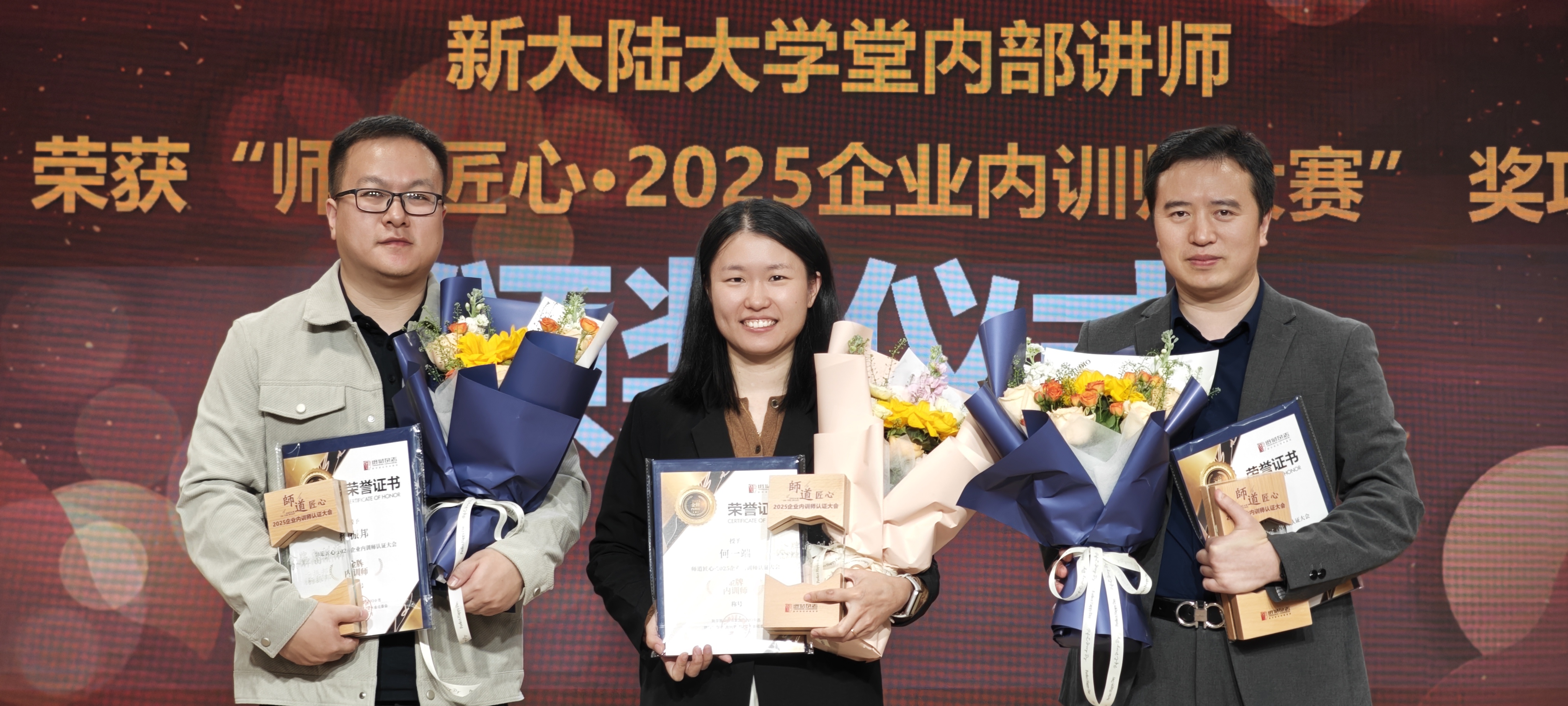 12月3日,“师道匠心·2025(第七届)企业内训师认证大会”圆满落幕。新大陆大学堂第二次参与此项全国性专业赛事并再续佳绩——宫经春、杨振邦、何一端三位内部讲师凭借卓越表现,从全国千余名参赛者中脱颖而出,斩获大赛最高荣誉“金牌内训师”称号!